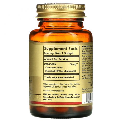 Описание товара Solgar, Megasorb CoQ-10, 60mg, 120 Softgels