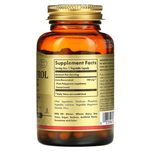 Описание товара Solgar, Ресвератрол, 100 мг, 60 вегетарианских капсул