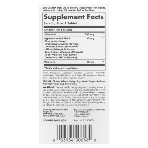 Описание товара Solgar, Sleep, тройного действия, 60 трехслойных таблеток