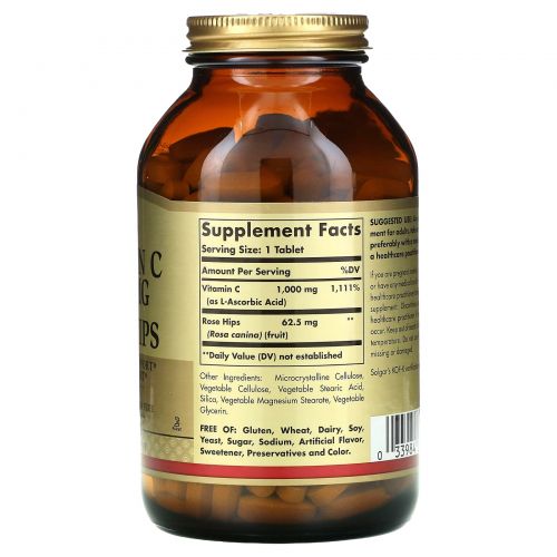 Описание товара Solgar, Витамин C-1000 с шиповником, 250 таблеток