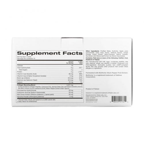 Описание товара Solumeve, Ageless Beauty, жидкий морской коллаген с коэнзимом Q10 и растительными веществами, поддержка волос, кожи и ногтей, с персиковым вкусом, 10 флаконов по 50 мл (1,69 жидк. унции)