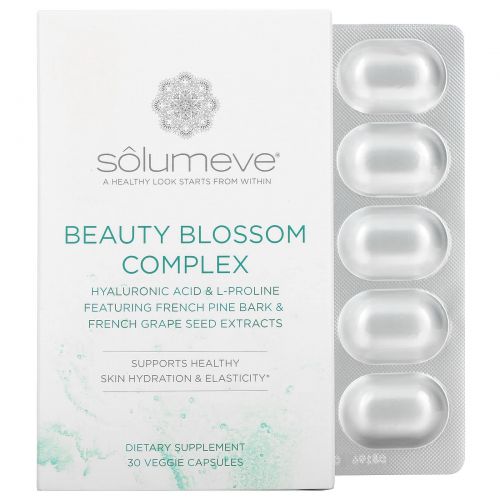 Solumeve, Beauty Blossom, комплекс для увлажнения кожи и выработки коллагена, 30 растительных капсул