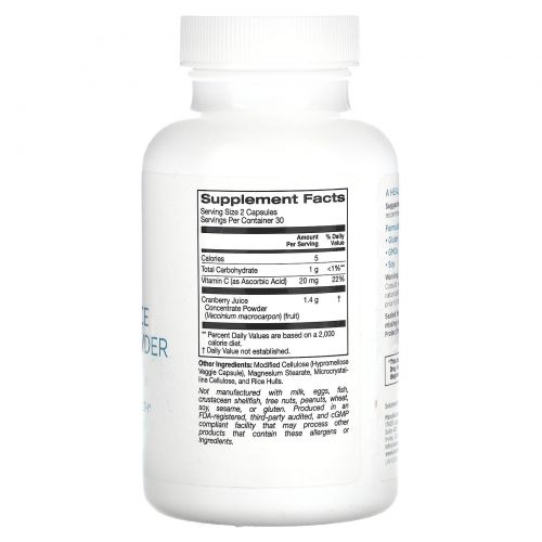 Витамин C (в виде аскорбиновой кислоты), Порошок из концентрата клюквенного сока (Vaccinium macrocarpon) (ягоды)