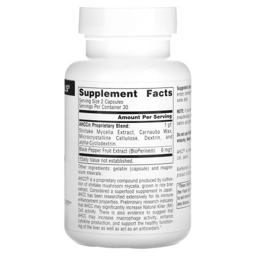 Описание товара Source Naturals, AHCC (активный гексо состав) с биопреном, 500 мг, 60 капсул