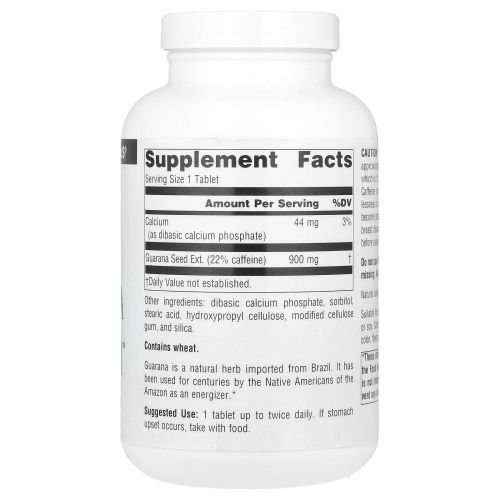 Описание товара Source Naturals, Энергетическое средство гуарана, 900 мг, 200 таблеток