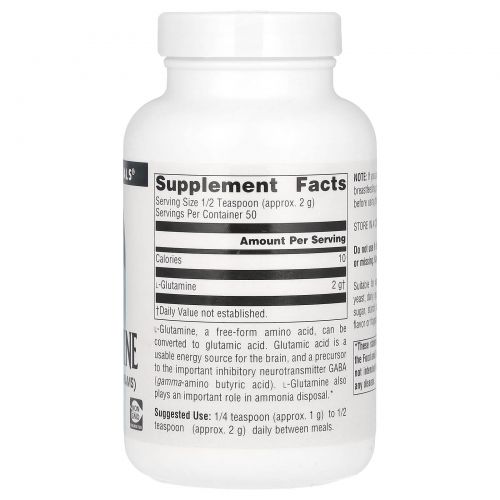 Описание товара Source Naturals, L-глютамин, порошок в свободной форме 3.53 унции (100 г)