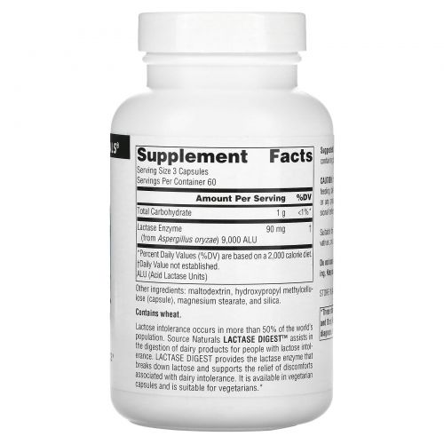 Описание товара Source Naturals, Lactase Digest, 180 растительных капсул