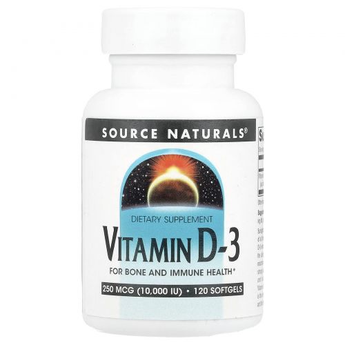 Описание товара Source Naturals, Vitamin D-3, 10,000 IU, 120 Softgels