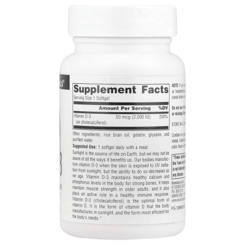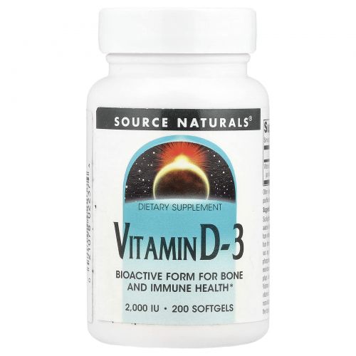 Описание товара Source Naturals, Витамин D-3, 2000 международных единиц, 200 мягких капсул