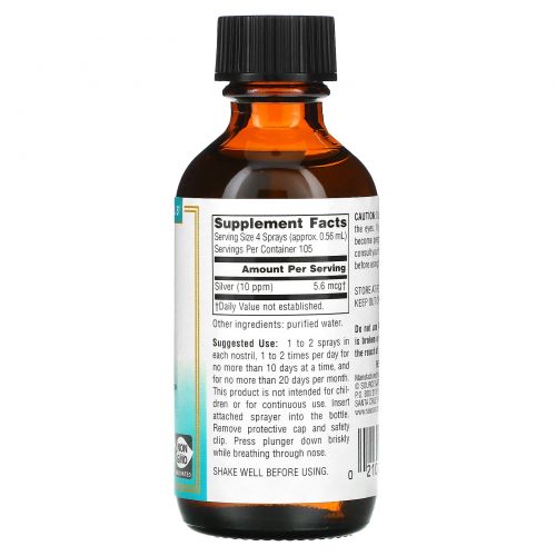 Описание товара Source Naturals, Wellness, Colloidal Silver Nasal Spray, 10 PPM, 2 fl oz (59.14 ml)