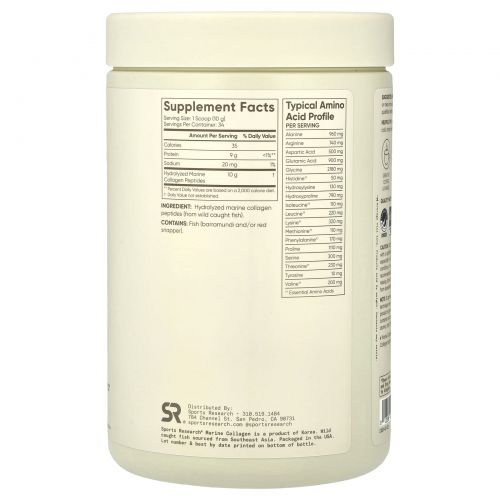 Описание товара Sports Research, Морские пептиды коллагена, без ароматизаторов, 12 унц. (340 г)