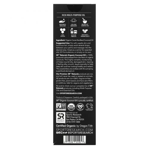 Описание товара Sports Research, Органическое фракционированное кокосовое масло, 16 ж. унц. (473 мл)