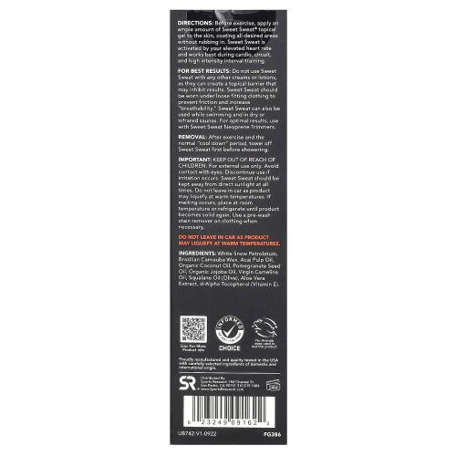 Sweet Sweat® — это гель для местного применения, который способствует обильному и быстрому потоотделению во время тренировок, чтобы вы могли снизить вес лишней воды и получить максимальную пользу от каждой капли. Sweet Sweat лучше всего подходит для сердечно-сосудистой системы, круговых тренировок, высокоинтенсивных тренировок и сауны. Вы можете использовать стик Sweet Sweat Stick так часто, как вам удобно. Он не содержит запаха и подходит для людей, чувствительных к добавлению отдушек.
