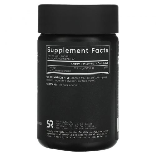 Sports Research, Vitamin D3 with Coconut Oil, 5000 IU, 30 Softgels