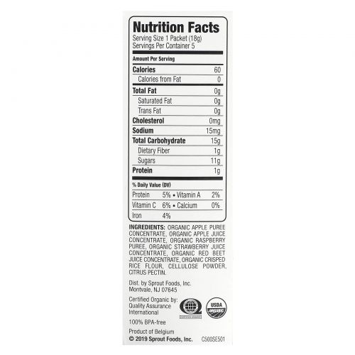 Описание товара Sprout Organic, Хрустящие тянучки, красные ягоды и свекла, 5 пакетиков по 0,63 унции (18 г)