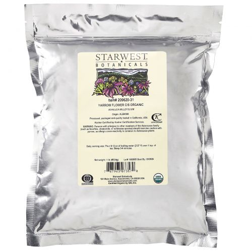 Описание товара Starwest Botanicals, Органические цветы тысячелистника, срезанные и переложенные, 453,6 г (1 фунт)
