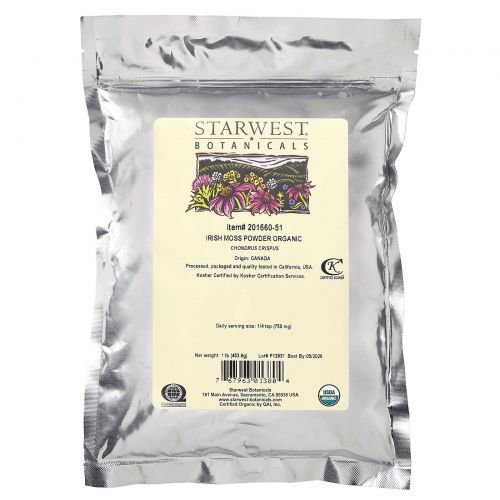 Описание товара Starwest Botanicals, Порошок из органического ирландского мха, 453,6 г (1 фунт)