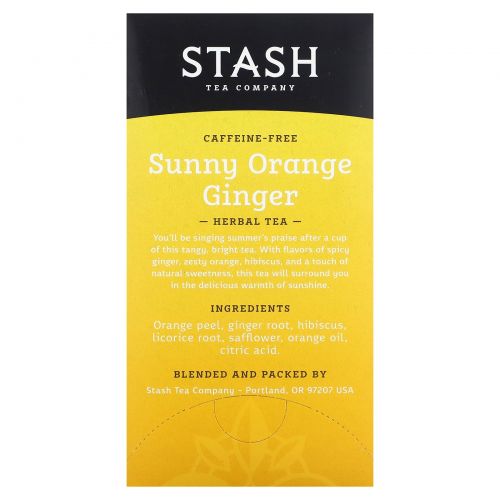 Описание товара Stash Tea, Herbal Tea, солнечный апельсин и имбирь, без кофеина, 18 чайных пакетиков, 36 г (1,2 унции)