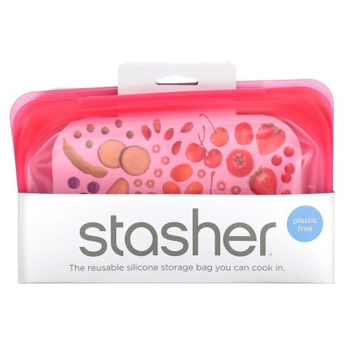 Описание товара Stasher, Reusable Silicone Food Bag, Snack Size Small, Raspberry, 9.9 fl oz (293.5 ml)