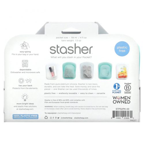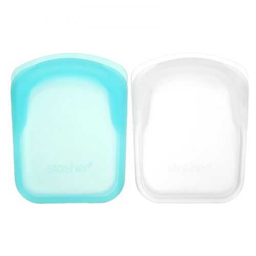 Описание товара Stasher, Силиконовый карман многоразового использования, прозрачный и голубой, 2 штуки, по 42 г (4 унции)