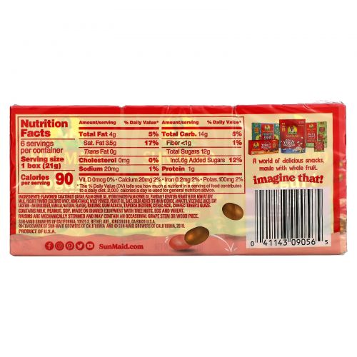 Описание товара Sun-Maid, Йогурт с изюмом, Pb и J, 6 коробок, 21 г (0,75 унции)