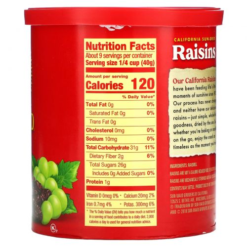 Описание товара Sun-Maid, Калифорнийский сушеный на солнце изюм, 369 г (13 унций)