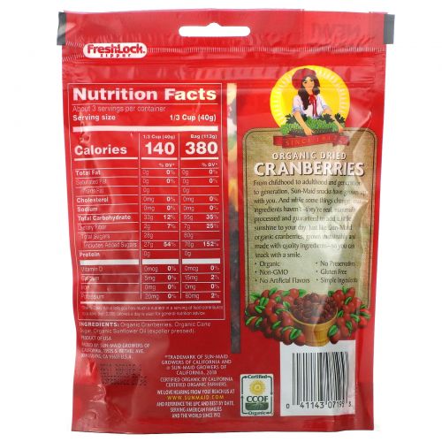 Sun-Maid, Органическая сушеная клюква, 113 г (4 унции)