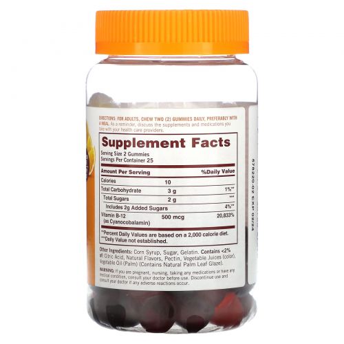 Описание товара Sundown Naturals, Жевательные мармеладки B12, малина, ягодная смесь и апельсин, 500 мкг, 50 жевательных мармеладок