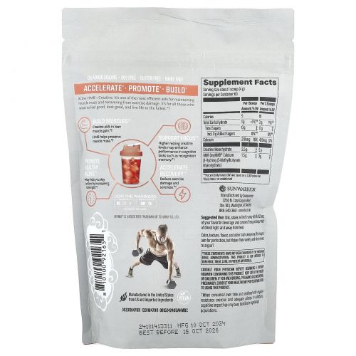 Описание товара Sunwarrior, Sport, активный HMB + моногидрат креатина, без добавок, 240 г (8,46 унции)