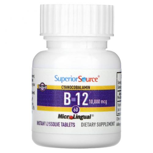 Описание товара Superior Source, цианокобаламин, витамин B12, 10 000 мкг, 60 быстрорастворимых таблеток MicroLingual