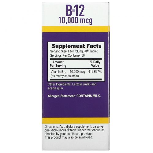 Витамин B12 (в виде метилкобаламина) 10 000 мкг 166 670%