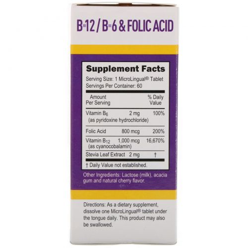 Superior Source, MicroLingual, цианокобаламин B-12 1000 мкг, B-6 и фолиевая кислота 800 мкг, 60 быстрорастворимых таблеток