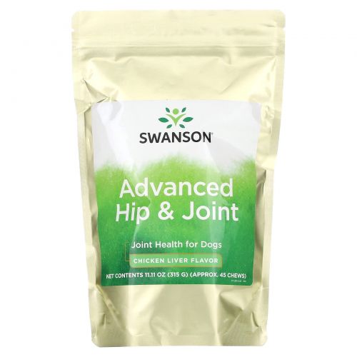 Описание товара Swanson, Advanced Hip & Joint, для собак, куриная печень, 45 жевательных таблеток, 315 г (11,11 унции)