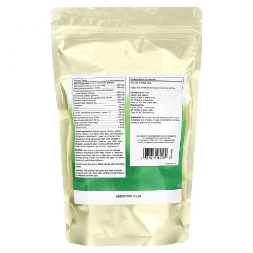Advanced Hip & Joint for Dogs от Swanson Pet Nutrition сочетает в себе питательные вещества для тканей суставов, такие как глюкозамин, хондроитин, МСМ, зеленогубую мидию и гиалуроновую кислоту с омега-3 жирными кислотами, антиоксидантами, ферментами и проверенными временем травами для здоровья суставов, такими как босвеллия и куркума. все в мягких жевательных таблетках со вкусом куриной печени.