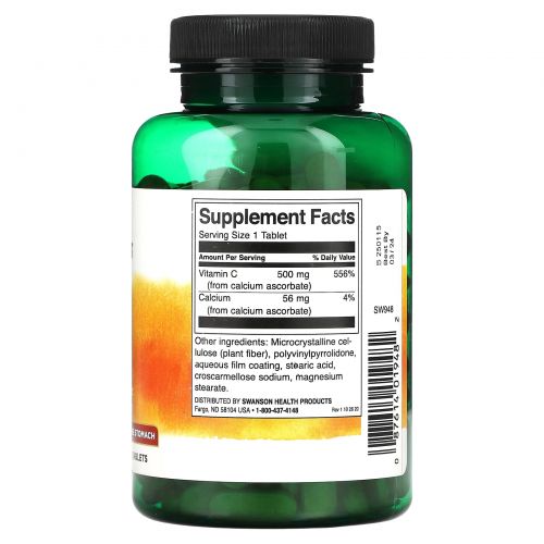 Описание товара Swanson, буферизованный витамин C, 500 мг, 250 таблеток