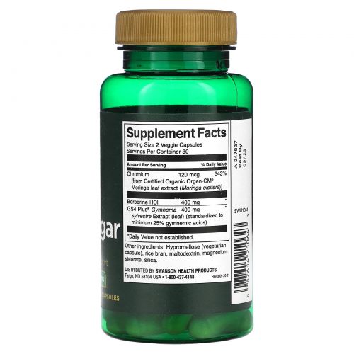 Описание товара Swanson, Чистый сахар в крови, 60 растительных капсул