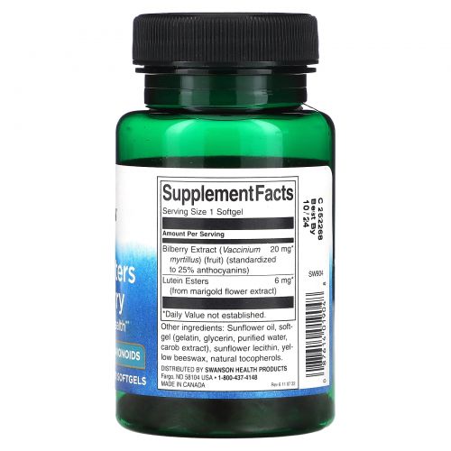 Описание товара Swanson, Эфиры лютеина и черника, 120 капсул