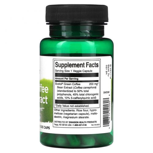 Описание товара Swanson, Экстракт зеленых кофейных зерен, 60 растительных капсул