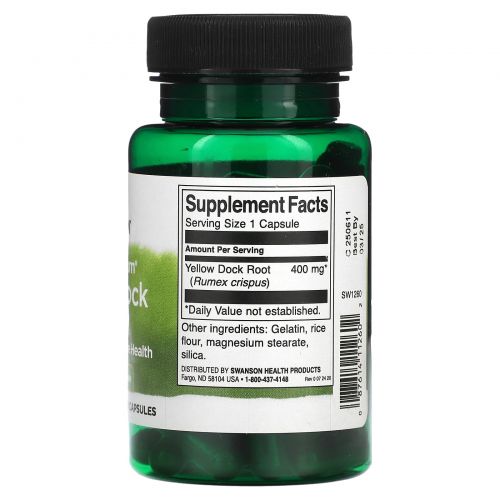 Описание товара Swanson, Экстракт жёлтого дока полного спектра, 400 мг, 60 капсул