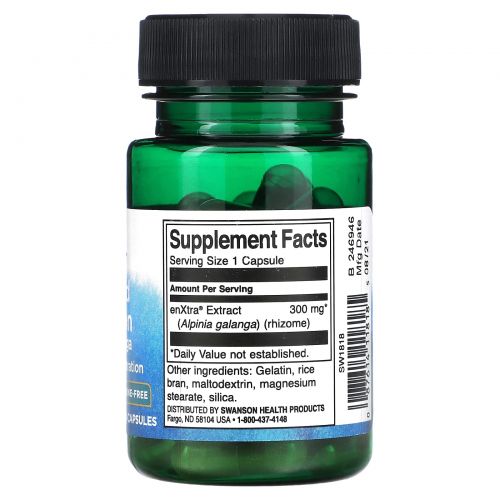 Описание товара Swanson, Focused Attention Alpinia Galanga, без кофеина, 300 мг, 30 капсул