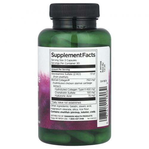 Описание товара Swanson, Глюкозамин и коллаген типа II, 90 капсул