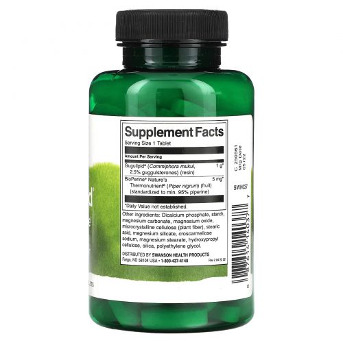 Описание товара Swanson, Гугулипид с BioPerine, стандартизированный, 90 таблеток