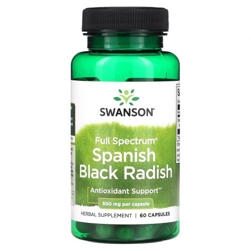 Описание товара Swanson, Испанская черная редька полного спектра, 500 мг, 60 капсул