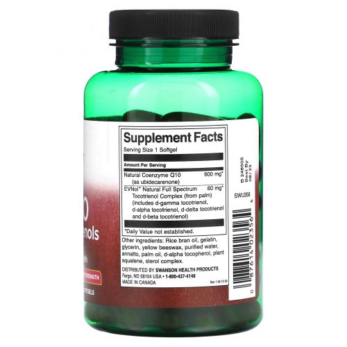 Описание товара Swanson, Коэнзим Q10 с токотриенолами, 600 мг, 60 мягких таблеток