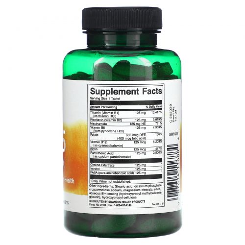 Описание товара Swanson, Комплекс B-125, с более высокой эффективностью, 100 таблеток
