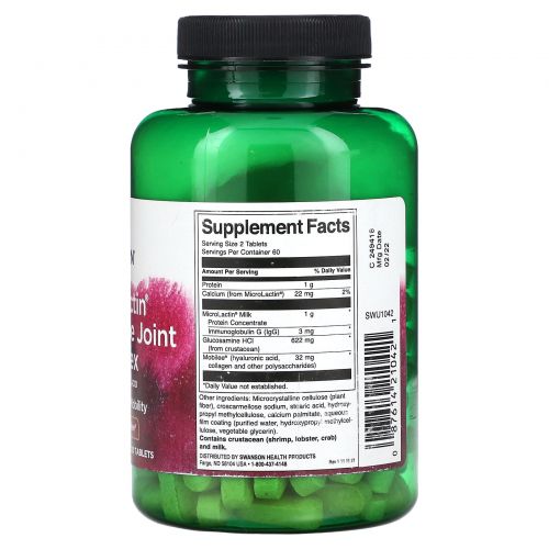 Описание товара Swanson, Комплекс для суставов MicroLactin и глюкозамина с гиалуроновой кислотой, 120 таблеток