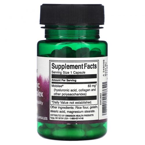 Описание товара Swanson, Комплекс гиалуроновой кислоты, 83 мг, 60 капсул