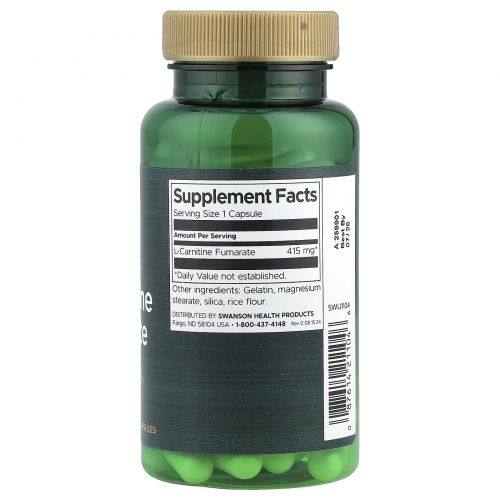 Описание товара Swanson, L-карнитин фумарат, 415 мг, 60 капсул