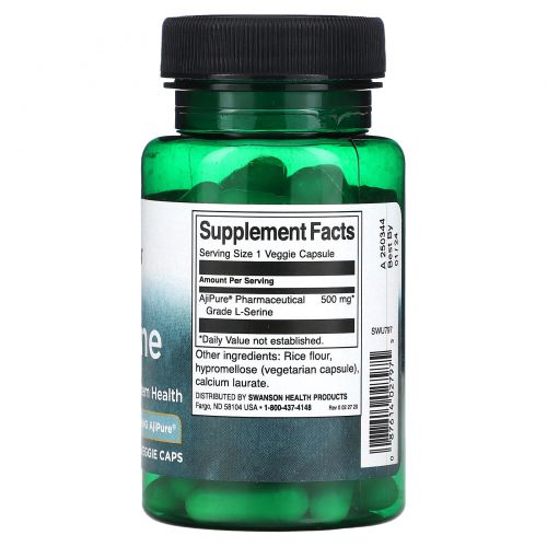 Описание товара Swanson, L-серин, 500 мг, 60 растительных капсул