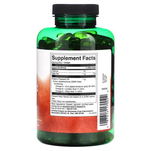 Описание товара Swanson, Льняное масло, 1 г, 200 капсул